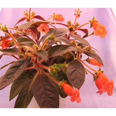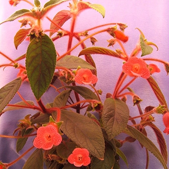 Deep coral-salmon backed blooms with swirls of coral-pink on white face. Medium green leaves on darker stems. Heavy bloomer. (Liu)