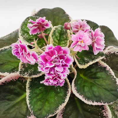 I have been impressed with the growth of this plant. The leaves are wavy, but still lay nicely. The only down side so far is they have a tendency to hang over the sides of the pot, so might need some support. The variegation is lovely and has been stable even in my warm summer temperatures. I'm just getting buds now so I haven't yet seen the flower but it looks like it will be a good bloom. The pictures are so gorgeous, I can't wait. I'm very happy with it so far.