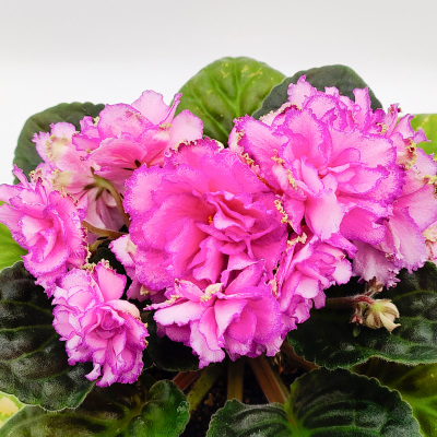 Gorgeous ! lush double and beautiful flowers with a border along the edge of the petals. I am very glad that I bought this violet.