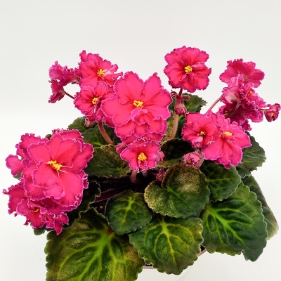 (Dzhus Adelina) Double coral stars with raspberry edge. Standard. (S Dzhura).