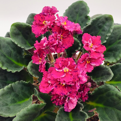 This is a sought-after variety and I bought two plants…they’re still young, so I’ll give them plenty of time before deciding they live up to the hype or not. I grow under lights and the early blooms are definitely pretty, but not nearly as intense as photos on the internet (not just here!) would have it appear. The blooms are tiny, too. (This is not because the plants are babies…lots of other varieties are huge overachievers with their very first blooms.) Foliage is neat and unremarkable. I think the variety has potential, but let’s see what mine look like when they’re mature.