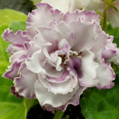 Really beautiful variety. The blooms on my Violet were mostly frilly white with faint smudges of wine red and pink.