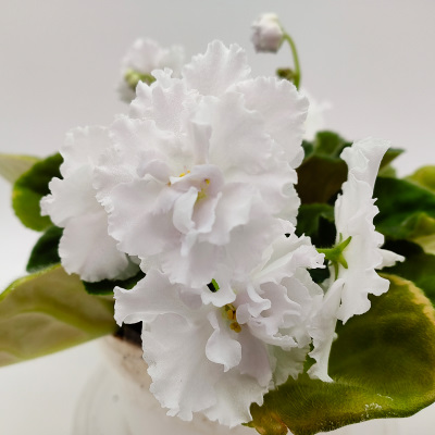 This plant had a bud when it arrived on my doorstep, and I was rewarded with a lovely double bloom of white and purple. What I enjoy about this is that it does not look exactly like the photo--each blossom is unique and gorgeous, which keeps me eager to see the next bloom. And the flowers really endure!