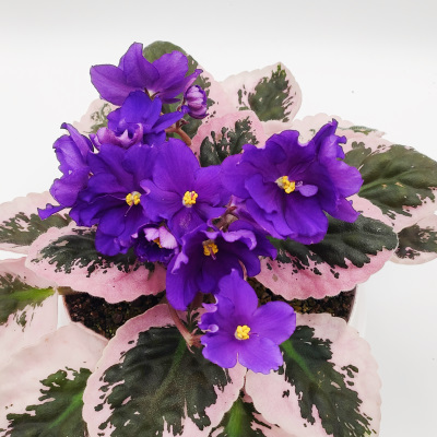 I was absolutely overwhelmed by the beautiful variegated foliage on this violet and it arrived very well shaped. Then recently the most gorgeous and darkest purple violet I have ever seen popped up, standing tall above the foliage with lots of friends close behind. Plants always arrive from Violet Barn in excellent condition, well packaged for the season.