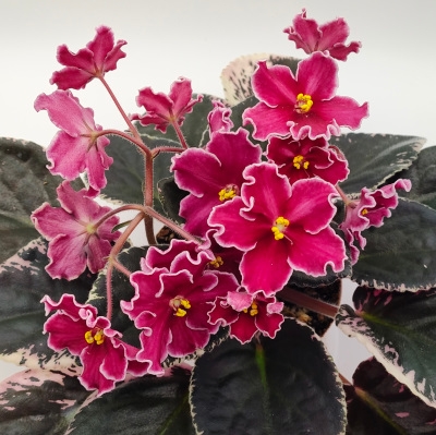 (RS Ogaon Zhelanie Sin) Large red sdbl. stars with white edging. Dark green and white TL variegated foliage. (Repkina)