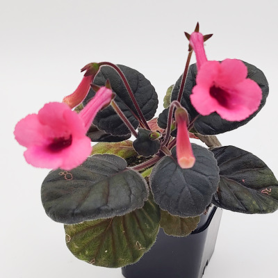 This is a beautiful little plant with gorgeous deep rose flowers with a deeper throat. Simply stunning! Blooms nearly constantly and foliage is neat and healthy. Truly wonderful sinningia.
