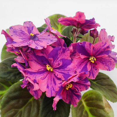 This plant is a baby. Yet it has 12 blooms on it! The color ranges from solid purple to fantasy on one petal, to fantasy on two, and so on, on all petals. I had to buy 2 more of these. This is a keeper for sure.