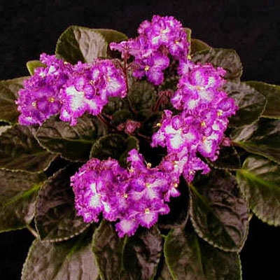 She's been a bit slower growing for me but has some of the most gorgeous ruffled foliage I've ever seen. I love their glossy shine and they are showing promise for good symmetry, though the leaves on mine are more ruffled and folded upward than the plant pictured. The fascinating flowers are freely produced, consistent in patterning and long lived. Do not miss out on this special plant!