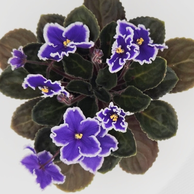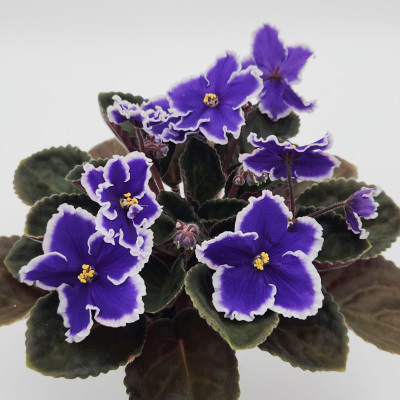 This violet is one of my favorites. I agree with the previous reviewer--the blooms are quite striking! The white border around the deep purple petals provides a very nice color contrast. I've been pleased with all the violets I've purchased from Violet Barn, and this plant is certainly no exception to that.