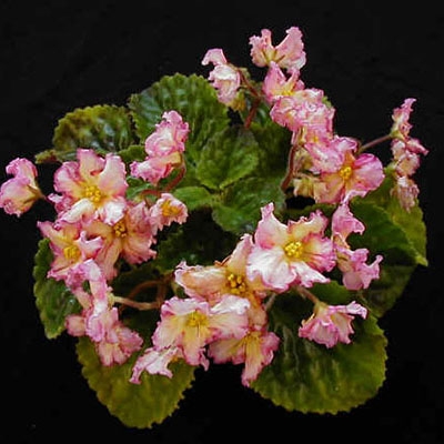 I love this violet, it has been a constant bloomer and very hardy. The blooms are delicate with a lovely frilled edge with a hint of pink, pale yellow petals with a darker yellow center and slight pink blush. The coloring depends on light and temps, paler in summer and more vivid in winter. Worth the effort to grow.