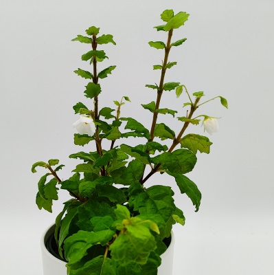 Lovely little gesneriad that makes a great bonsai specimen. Small growing shrub with thumbnail-sized green leaves and symmetrical white blooms. Only known gesneriad with thorns (they are soft and won't harm you)! Propagated from plants collected on a 2024 expedition to the Dominican Republic.