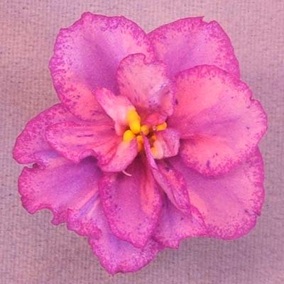 (Nasha Lagodke) Double pink stars with some light purple speckling in raspberry edging, blue rays. Dark green foliage. Standard chimera.
