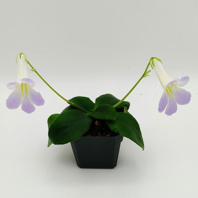 Large deep purple blooms on short flower spikes above medium green, pointed, hairy leaves in rosette form.