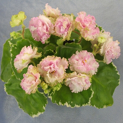 I purchased Irish Ruffles this winter and was pleasantly surprised. It has an attractive leaf and flower combination. Mine has more variegated than in the photo. Irish Ruffles is loaded with blossoms and flowers on a small young plant and the color pink is very pleasing with green edges and lots of ruffles. I recommend this plant Karen Hood