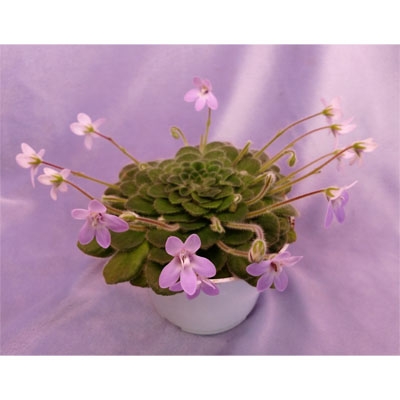 I absolutely love this compact Petrocosmea hybrid. Small fuzzy, medium green leaves form a tidy rosette. Absolutely adorable and a must have for your Petrocosmea collection. As always, the Violet Barn delivers on all fronts.