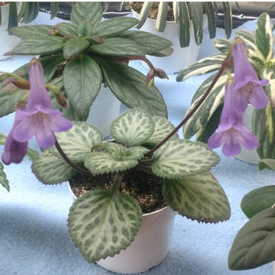 Primulina ‘Loki’ is a truly eye-catching plant with dramatic foliage and charming blooms. The leaves are beautifully textured, deep green with striking veining that gives the plant a bold, almost sculptural appearance. Even when not in flower, it stands out as a showpiece.