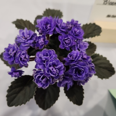 I found this violet's picture online over a year ago and could not find the correct one. (There are two flower color variations for Crinkle Blue- the correct and original one has the white edge, which is desired by serious growers) Its an amazing violet. Easy to grow and beautiful to look at! It is a must have mini!
