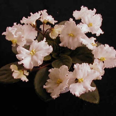 This is a beautiful plant, even before it bloomed. Extremely dark green foliage with dark red back. A must for anyone who wants a light bloom/dark leaf contrast plant. Blooms are long lasting too.