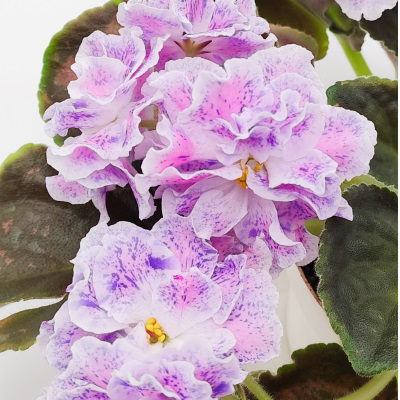 My violet has two opens flowers and many buds that will soon open. Nice size flowers but minimal white patches on the flowers like the picture.