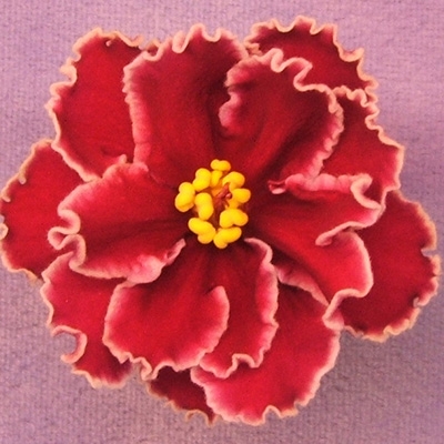 I purchased this variety in my first order from Violet Barn, about 6 months ago. The baby doubled in size, still in the original 2.5" pot and already bloomed beautifully! The flowers are small which is normal for the first blooming. The color is absolutely stunning! The pictures on the web site (with all my respect) do not do any justice. The actual color is not bright red, it is actually darker burgundy color which I like. Makes perfect contrast with the white edge. I know I should have removed the first blooms to help the plant grow, but I just couldn't :) I enjoyed every day of the blooming. I have a very limited space for plants in my home, so I will get rid of some varieties that did not impress me, but this one is certainly a keeper. Thanks Violet Barn!