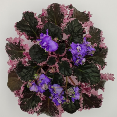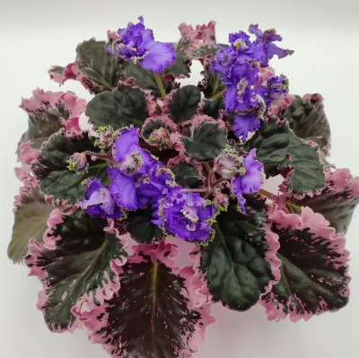 Apache Blanket is a beautiful plant... the blooms are a deep blue/purple with a slight green edge. The foliage is lightly varigated and is beautiful, shiny with a slight ruffle to the leaves. It's a gorgeous AV, blooms nicely, shapes well and is a great plant for all AV enthusiasts. I highly recommend Apache Blanket!