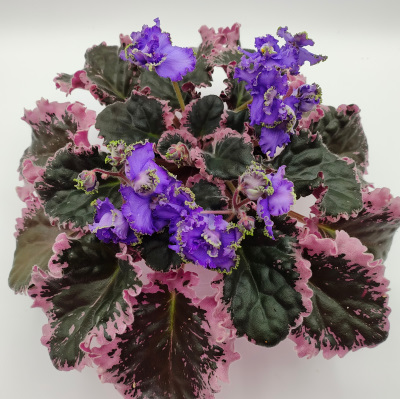 I got this plant from violet barn a while back but it had a different name. The blooms and foliage are the same as apache blanket. The foliage is very beautiful and the blooms stand out perfectly against the variegated foliage. Also the blooms last a long time. If you like the foliage as much as the bloo.s you will love this plant.
