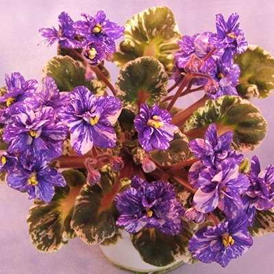 I really like the variegation on the leaves and the fantasy blooms on this one, and it is growing nicely for me. It is in its first bloom cycle, but I can’t really tell that it has girl foliage yet. It is still young - only about 4 inches across, so hopefully the girl foliage will become more pronounced as it matures.